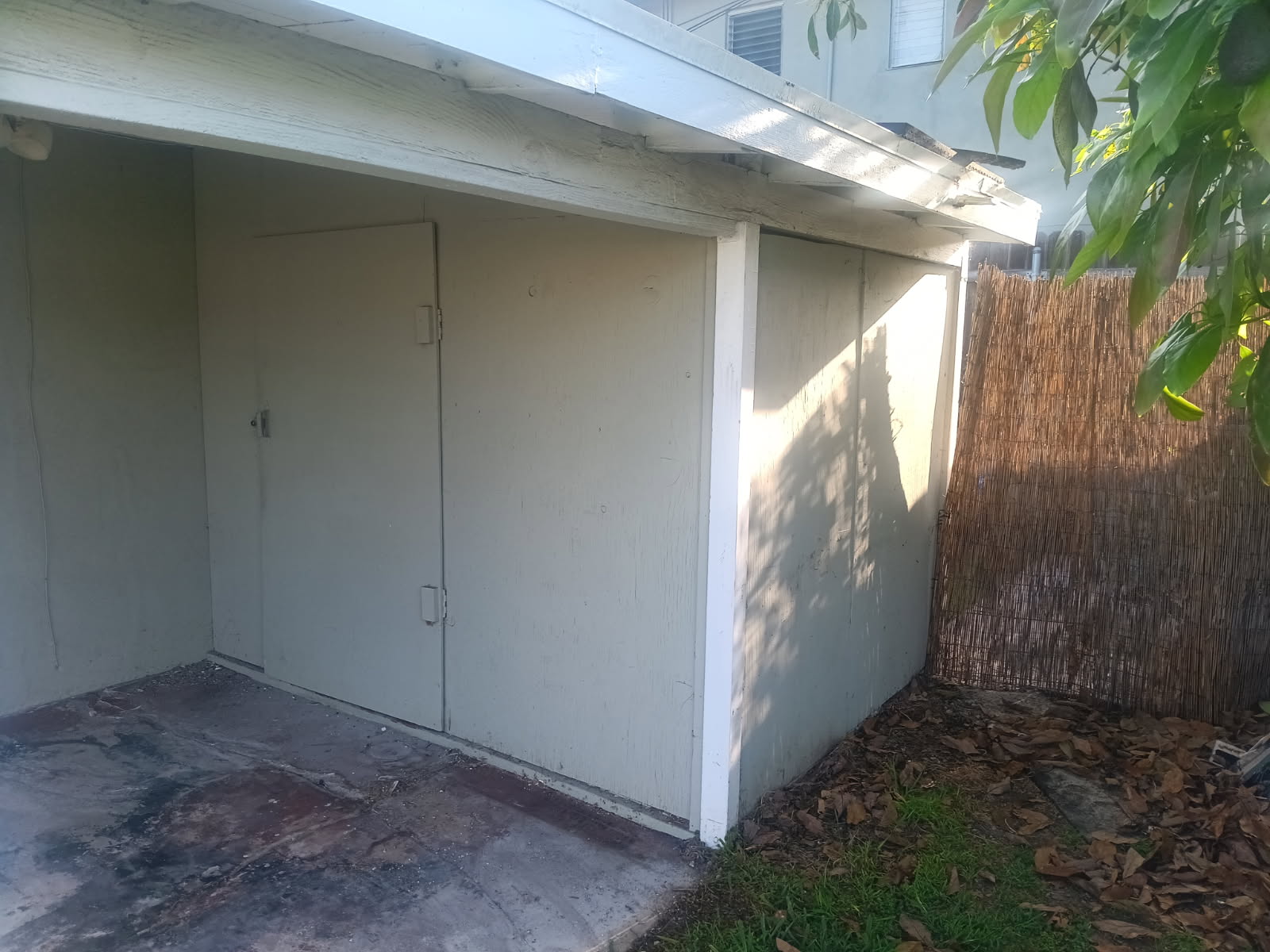 Carport is approximately 19' x 9' with the storage shed on the concrete at 9'